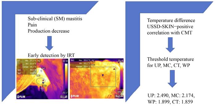 本研究将红外热成像技术与区域环境参数结合,建立了适用于热带地区的SM检测模型。相比传统方法,IRT具有非接触、快速、可批量检测的优势,农民通过手持热像仪拍摄乳区,即可通过温差对比初步判断感染情况。