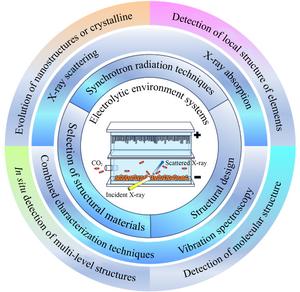 Carbon dioxide, as a greenhouse gas, is expected to be converted into other useful substances by the electrocatalytic CO2 reduction reaction (CO2RR) technology. The electrocatalytic cell, or electrochemical cell, used to provide the experimental environment for CO2RR plays an irreplaceable role in the study of this process and determines the success or failure of the measurements. In recent years, electrolytic cells that can be applied to in-situ/operational synchrotron radiation (SR) characterization techniques have gradually gained widespread attention. However, the design and understanding of electrolyte systems that can be applied to in-situ/operational SR technologies are still not sufficiently advanced. In this paper, the electrocatalytic cells used to study the CO2RR processes with in-situ/operando SR techniques are briefly introduced, and the types and characteristics of the electrolytic cells are analyzed. The recent advancements of in situ/operando electrolytic cells are discussed using X-ray scattering, X-ray absorption spectroscopy (XAS), light vibration spectroscopy, and X-ray combined techniques. An outlook is provided on the future prospects of this research field. This review facilitates the understanding of the reduction process and electrocatalytic mechanism of CO2RR at the atomic and molecular scales, providing insights for the design of electrolysis cells applicable to SR technologies and accelerating the development of more efficient and sustainable carbon negative technologies.