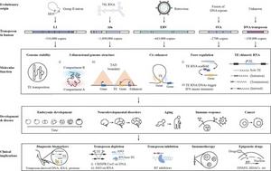 Transposable elements play a significant role in regulating gene expression and genome architecture, influencing development, immunity, aging, and disease progression. A study from researchers in China reviews these elements' molecular mechanisms and clinical implications, highlighting their potential as biomarkers and therapeutic targets for conditions like cancer, neurodegenerative, and autoimmune diseases. This research opens pathways for personalized medicine by targeting disease-specific transposable element signatures.