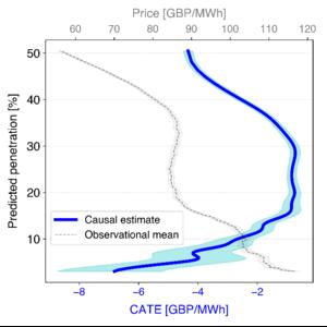 Do renewables always make power cheaper? In the UK, it depends on how much is on the system. Using causal machine learning on 2018–2024 market data, researchers find wind’s causal effect is U-shaped: at low penetration, +1 GWh can reduce prices by up to £7/MWh, the effect weakens mid-range, then strengthens again at higher penetration. The impacts have grown over time as renewables’ share rose, providing an evidence base for market design and support policy. These findings support adaptive support schemes and capacity planning that reflect changing marginal value rather than one-size-fits-all assumptions.