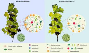 Powdery mildew poses a major threat to black currant production, yet some cultivars naturally withstand infection far better than others. This study reveals that resistant black currants deploy a multilayered defense system involving physical structures, specialized metabolites, and the assembly of protective microbial communities on leaf surfaces. By integrating metabolomics and phyllosphere microbiome profiling, the research identifies key leaf metabolites—such as salicylic acid, trans-zeatin, and griseofulvin—that help recruit beneficial bacteria and fungi linked to disease suppression. These metabolites also directly reduce pathogen growth. Together, these processes explain how resistant cultivars mount a coordinated defense that limits pathogen invasion and maintains plant health.